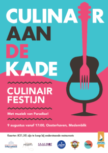 « Alle Evenementen Dit evenement is voorbij. Culinair aan de kade 2019 9 augustus 2019 @ 18:00 - 22:00 €31,50 « Opperdoezer Ronde Oogstfeest Boerenversmarkt op 7 en 8 september » Tijdens Culinair aan de kade genieten 600 gasten aan de kade van de Oosterhaven van de culinaire hoogstandjes van 5 restaurant. Culinair aan de Kade is onderdeel van de Westfriese Waterweek Medemblik. Muzikale omlijsting door Paradise. Toevoegen aan kalender Google Calendar iCalendar Outlook 365 Outlook Live Gegevens Datum: 9 augustus 2019 Tijd: 18:00 - 22:00 Kosten: €31,50 Locatie oosterhaven medemblik Oosterhaven Medemblik, Noord-Holland Nederland + Google Maps